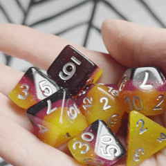 I bought this set to replace a set I loved from a big company I didn't want to support any longer. Now that I've seen these dice in person, I can wholeheartedly say that this set is *even prettier* than the set I was replacing! I've definitely got my eye on a few more sets from this shop. Everything I ordered from Dicebound is gorgeous and came clearly packaged with love. I'm looking forward to my next order! 💖