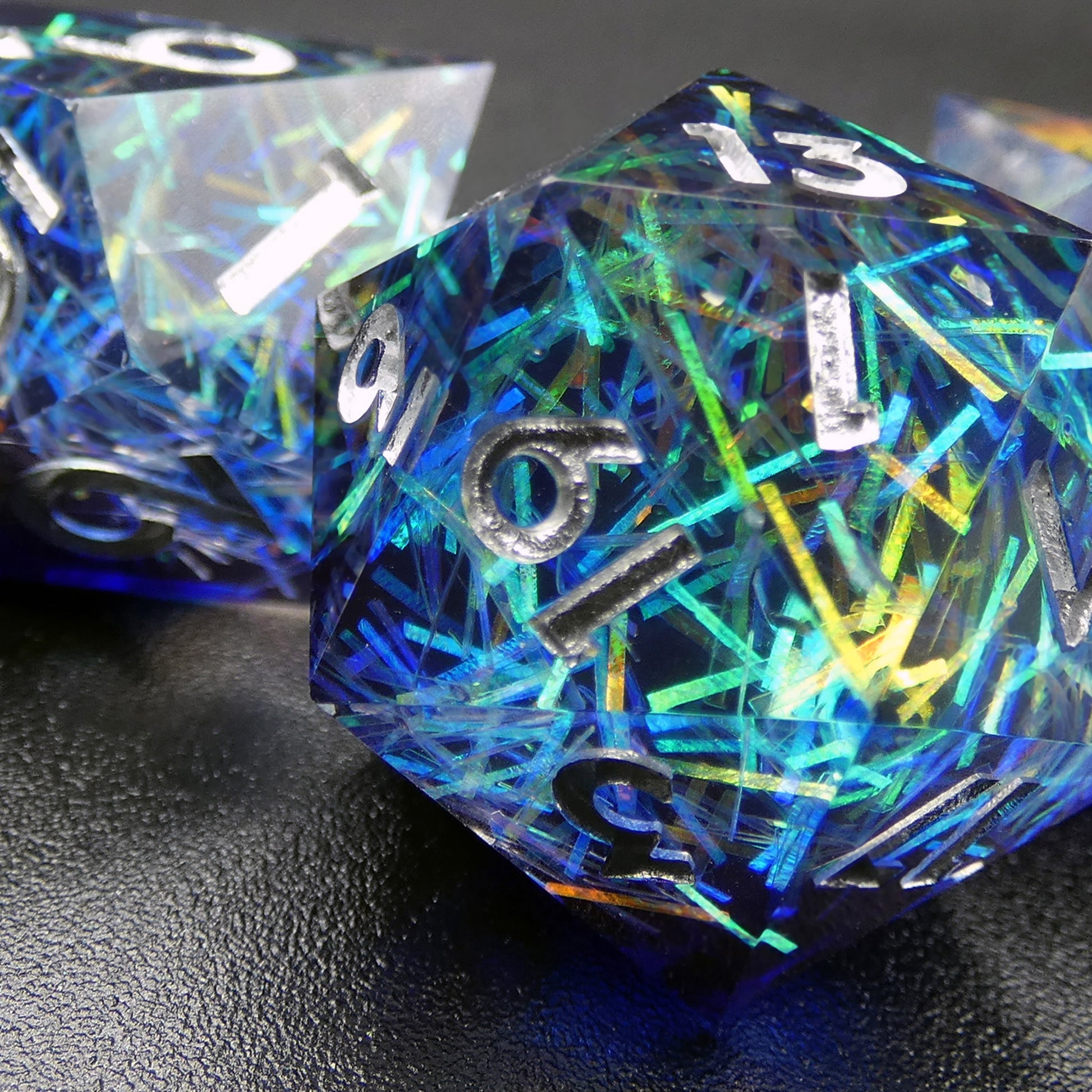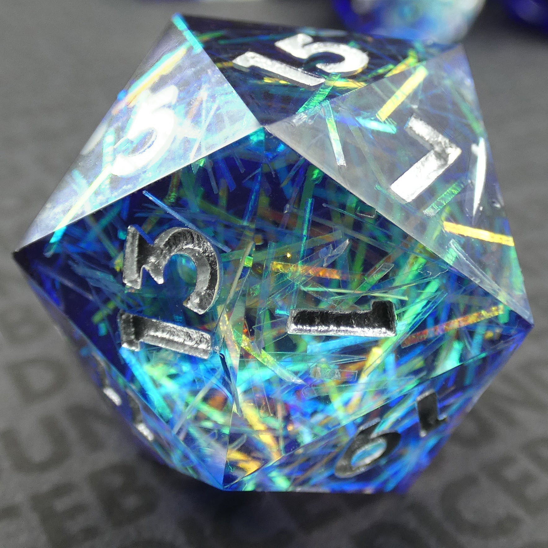 ✦ Blue and clear resin with iridescent inclusions