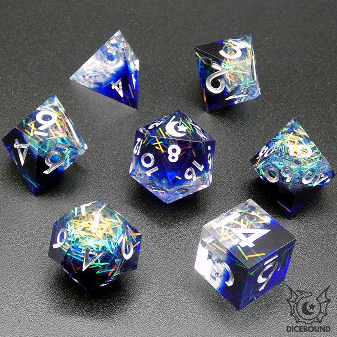 Dicebound dice are sharp edged, please exercise caution. They are not a toy. Do not step on your dice. Do not eat your dice. They present a choking hazard. Keep them away from children and pets.