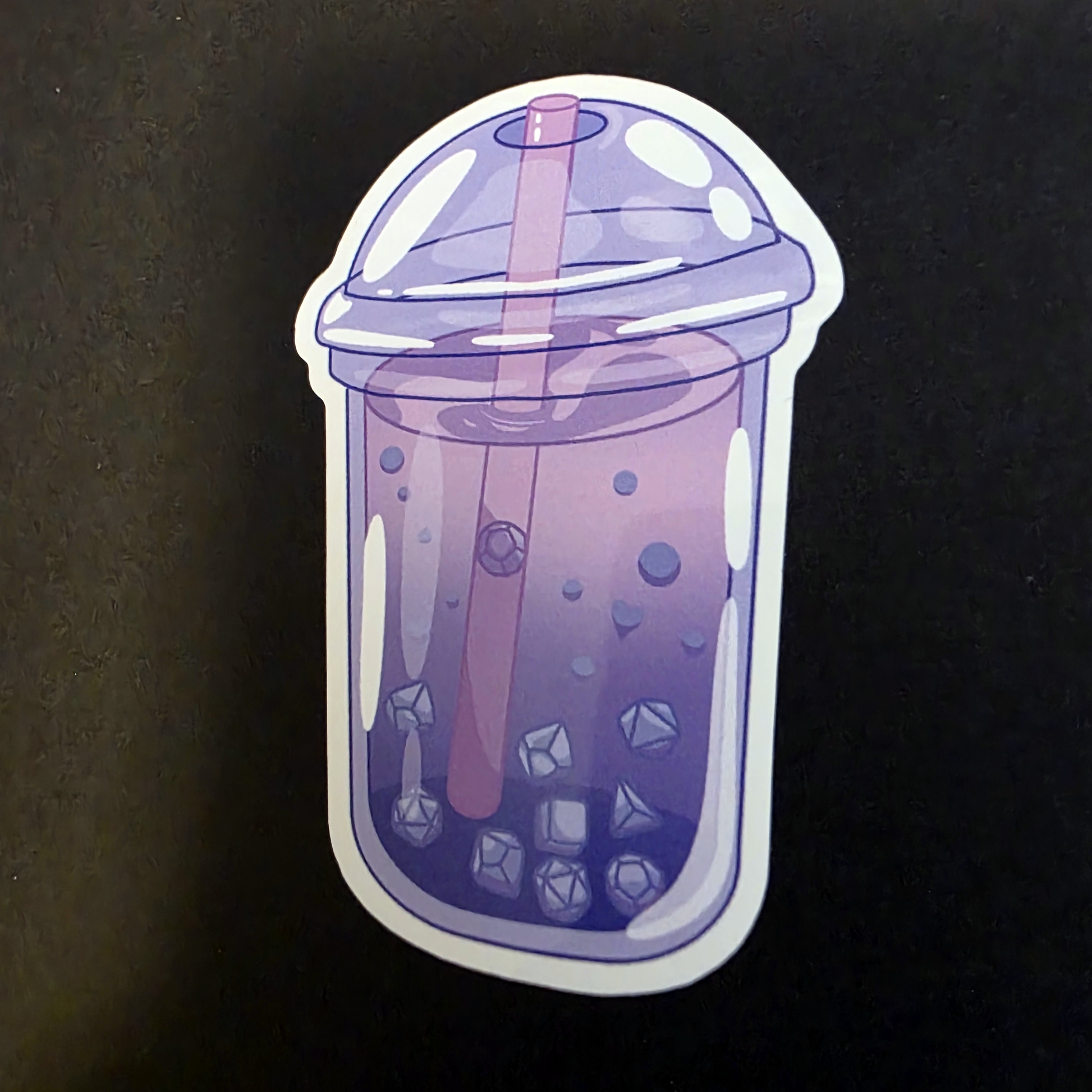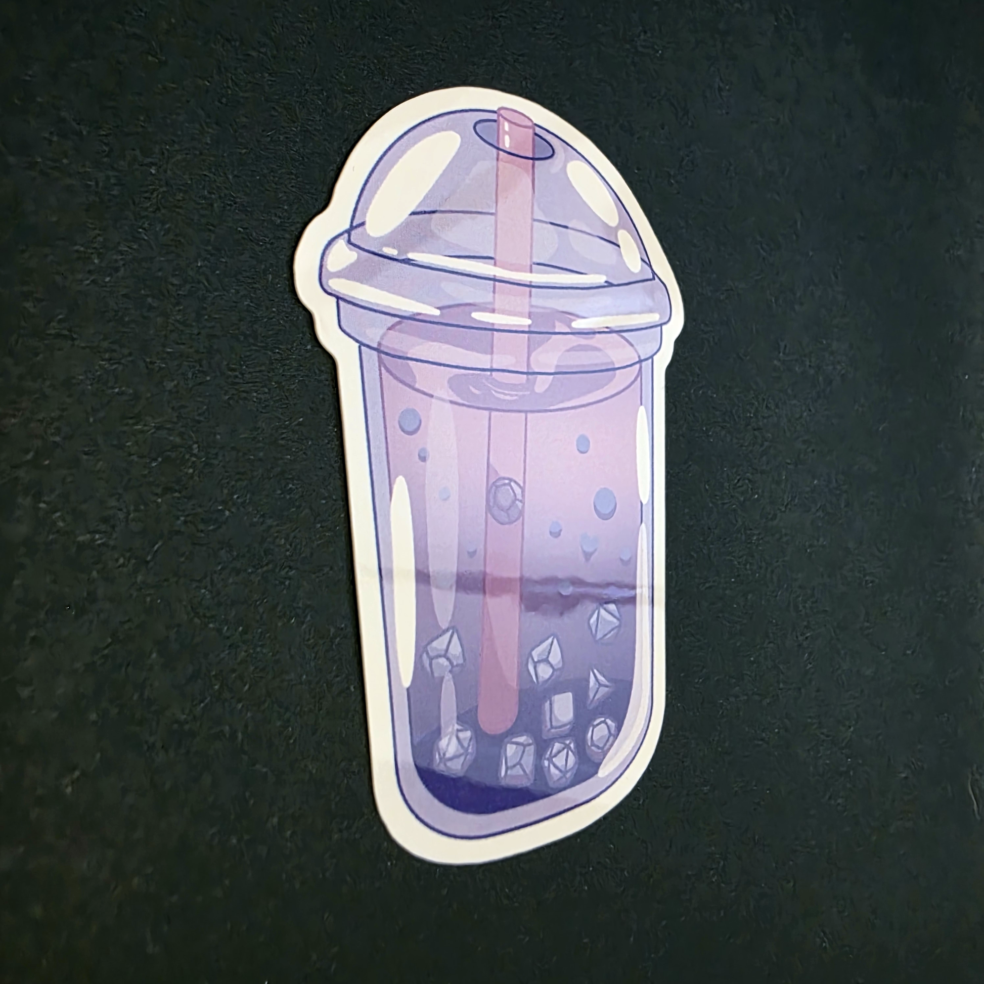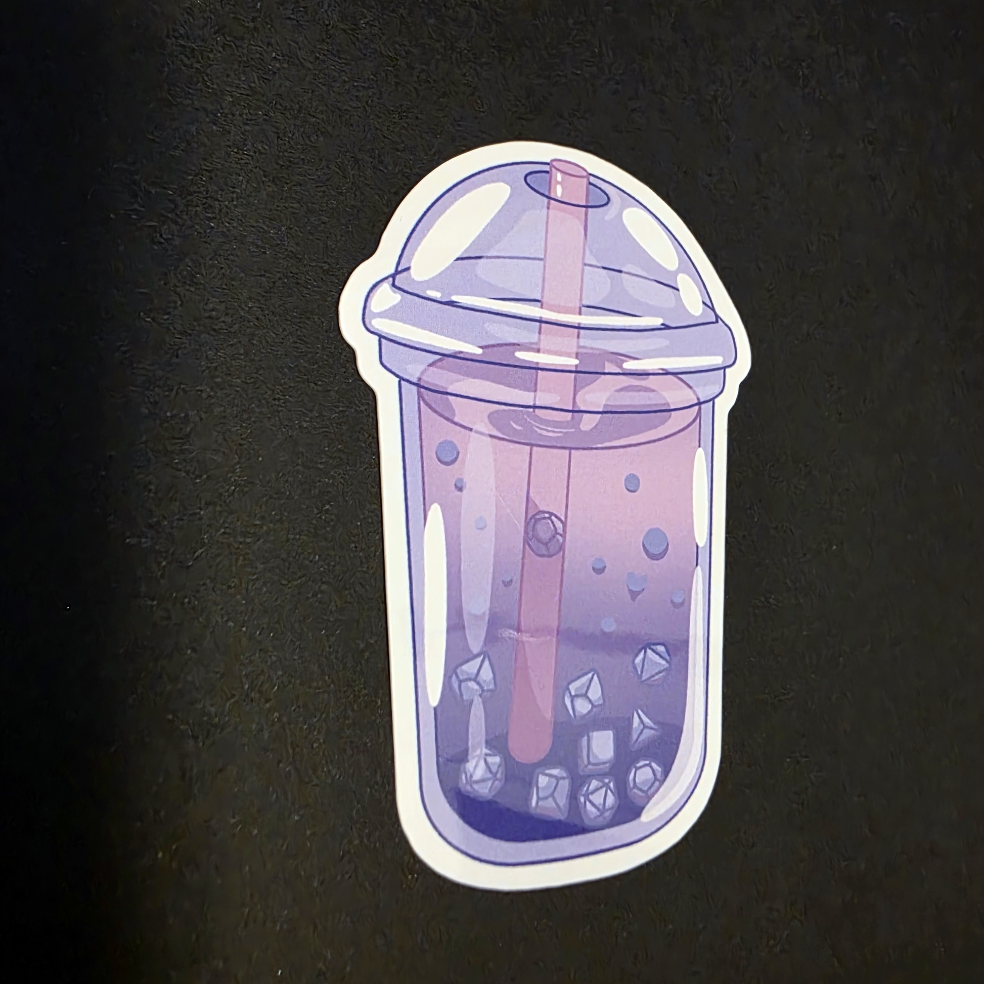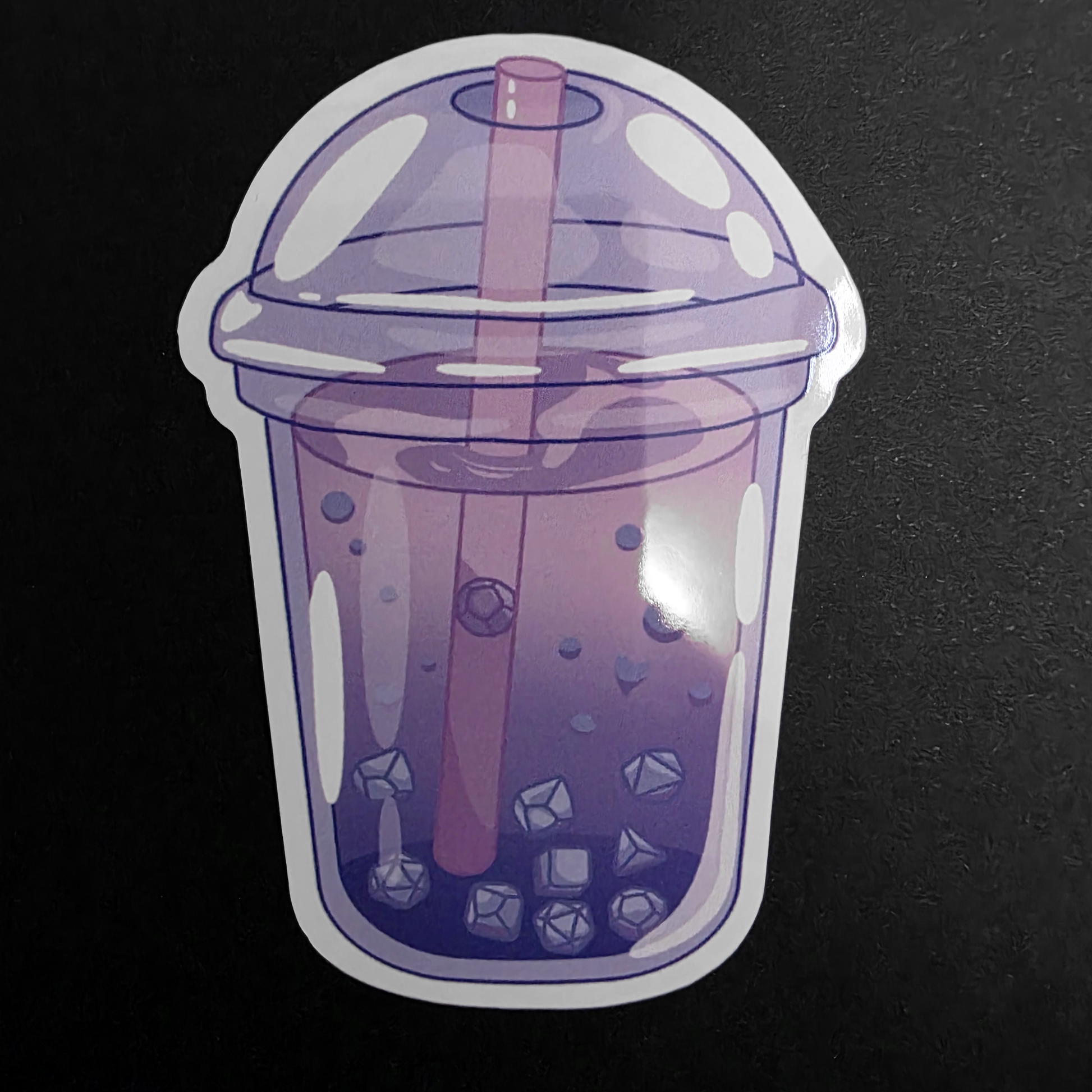 The forbidden boba tea! Filled with refreshing dice, get your vitamin d6, d20, d8, d12, d4, d100 and d10 today! Ready to adorn your water bottle, laptop, desk, locker or any other surface that needs some boba!