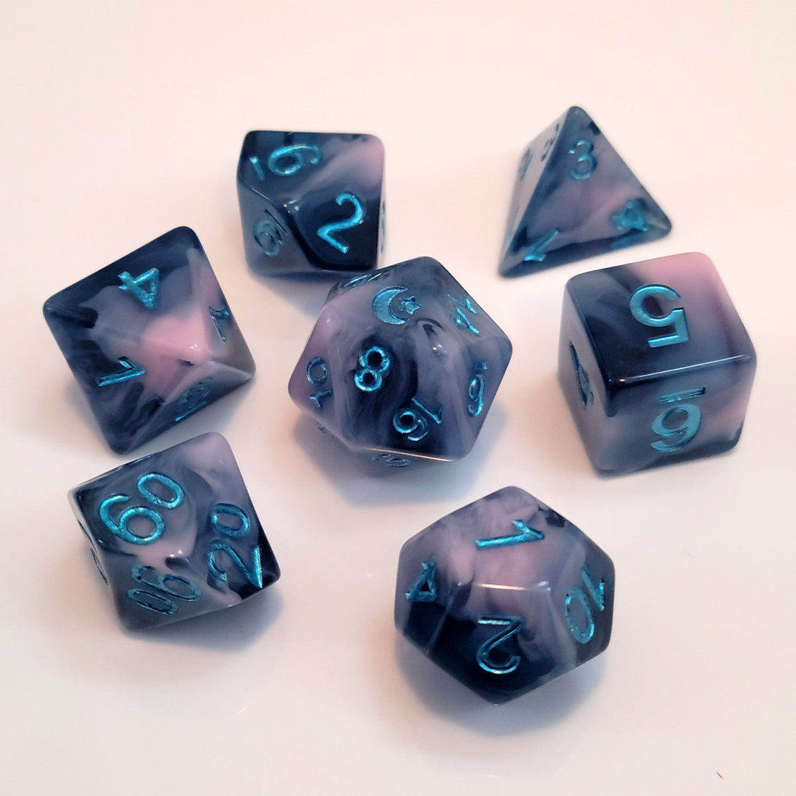 ✦ Star and moon logo replaces the "20" on the D20.