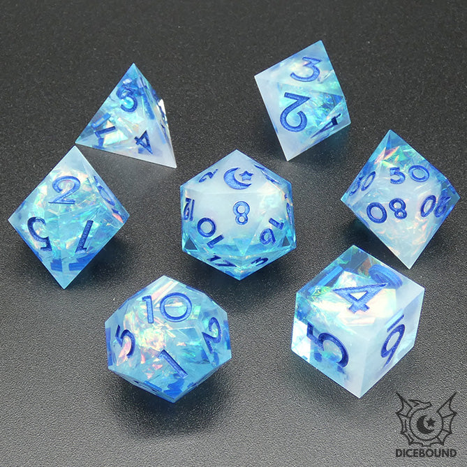 Dicebound dice are sharp edged, please exercise caution. They are not a toy. Do not step on your dice. Do not eat your dice. They present a choking hazard. Keep them away from children and pets.
