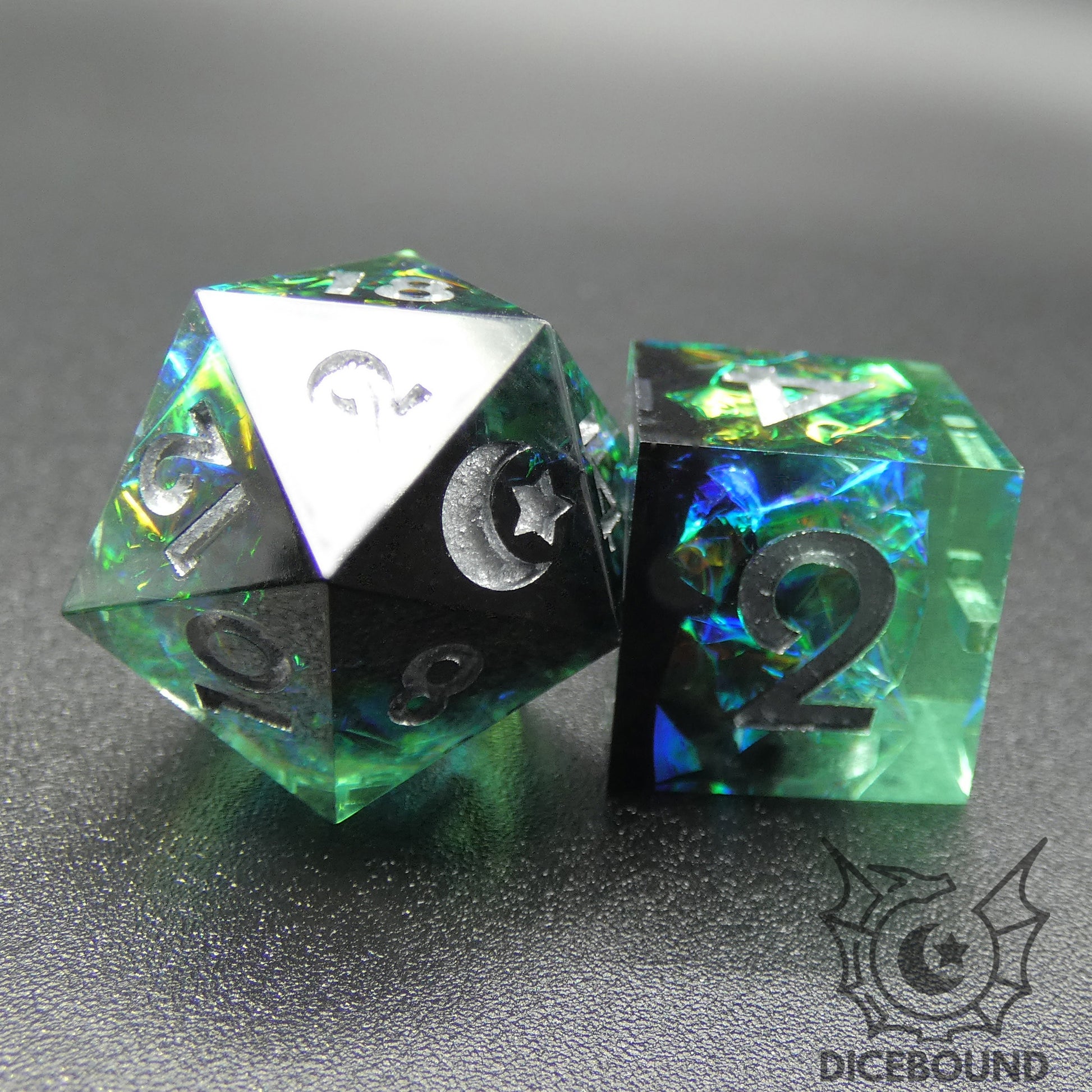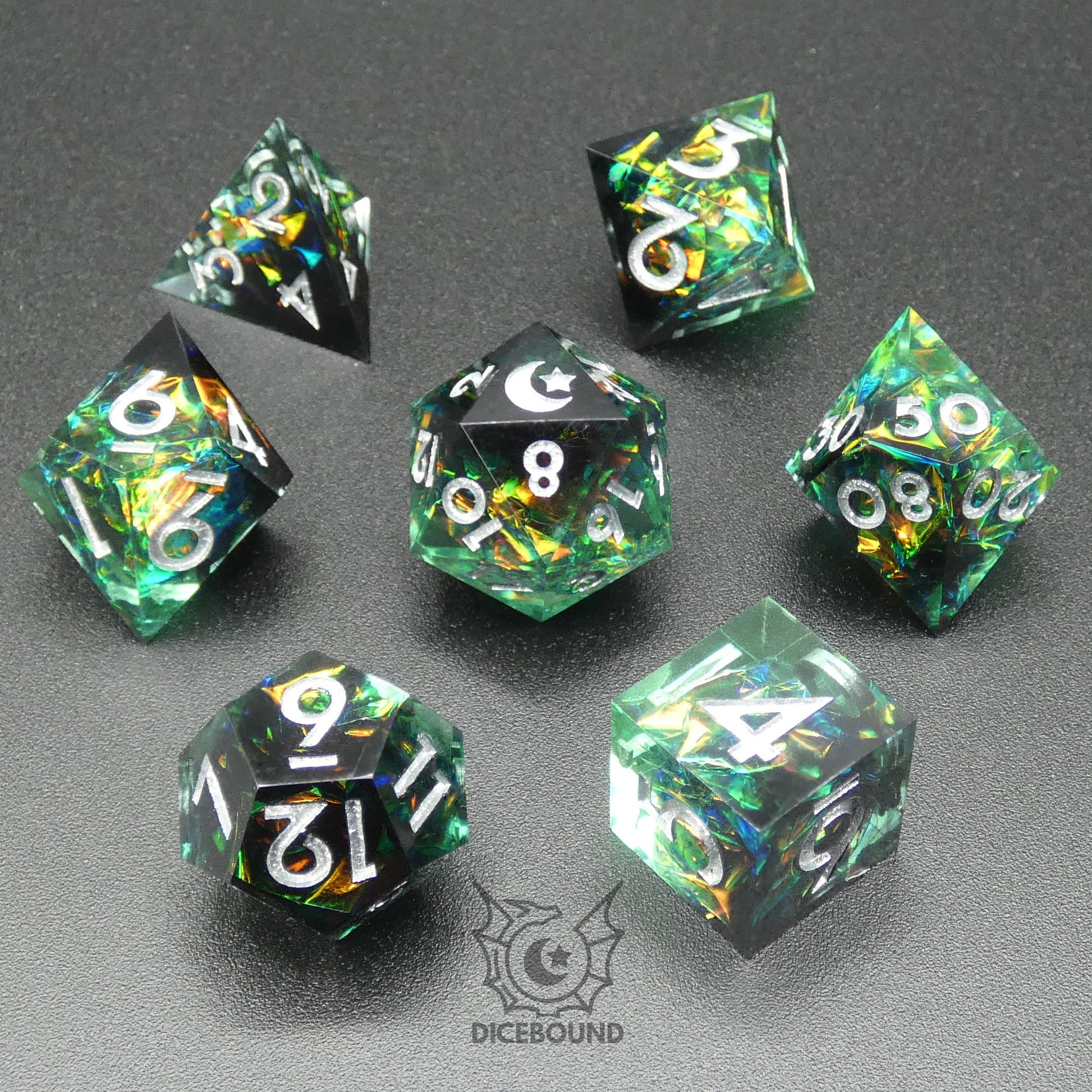 Dicebound dice are sharp edged, please exercise caution. They are not a toy. Do not step on your dice. Do not eat your dice. They present a choking hazard. Keep them away from children and pets.