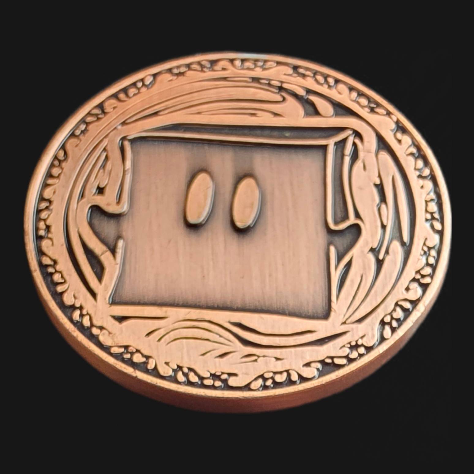 Hand drawn art turned into a D2 coin! Featuring a gelatinous cube on one side and an owlbear on the other.