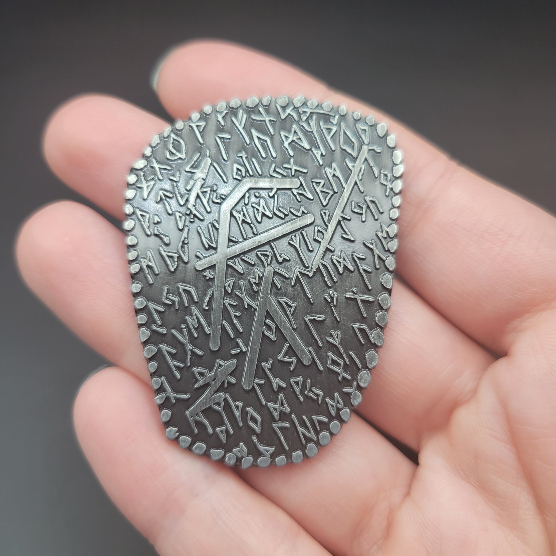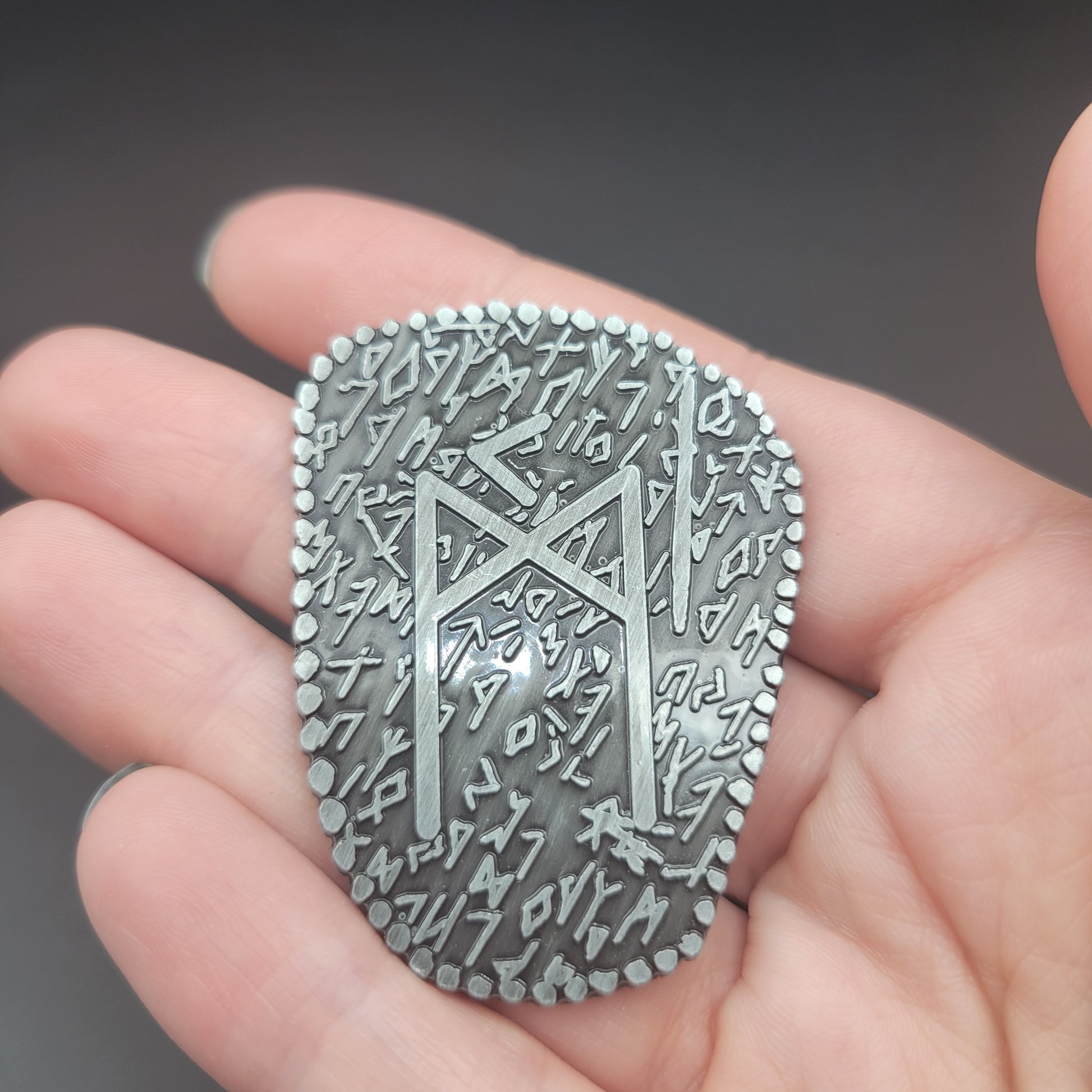 Solid Metal D2 Coin - Runic Writings