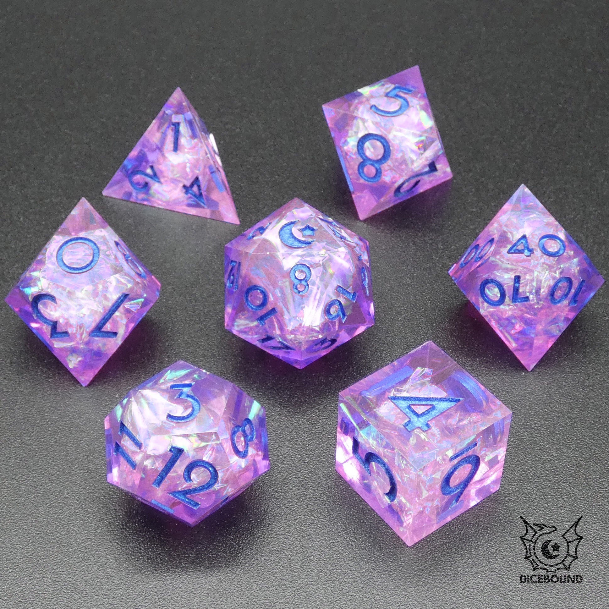 Dicebound dice are sharp edged, please exercise caution. They are not a toy. Do not step on your dice. Do not eat your dice. They present a choking hazard. Keep them away from children and pets.