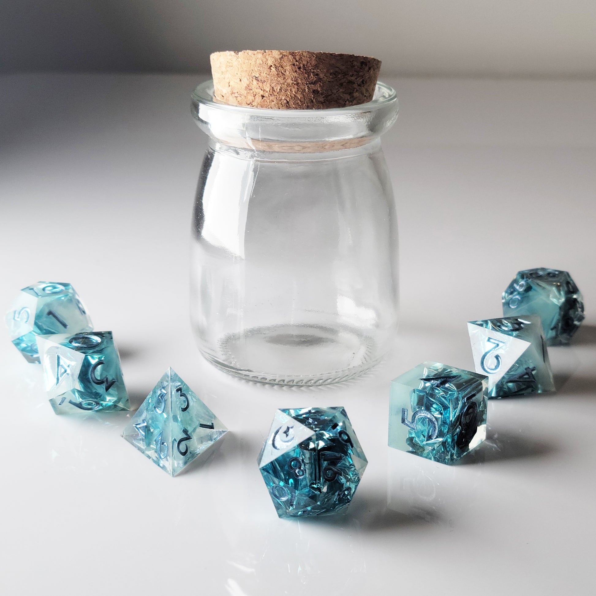 Came very fast because I live close to the seller. The dice are very pretty and look like the image, nice and sparkly. Also came with a sticker and a jar with a wax seal which I didn't expect! Very cool gift for my buddy.