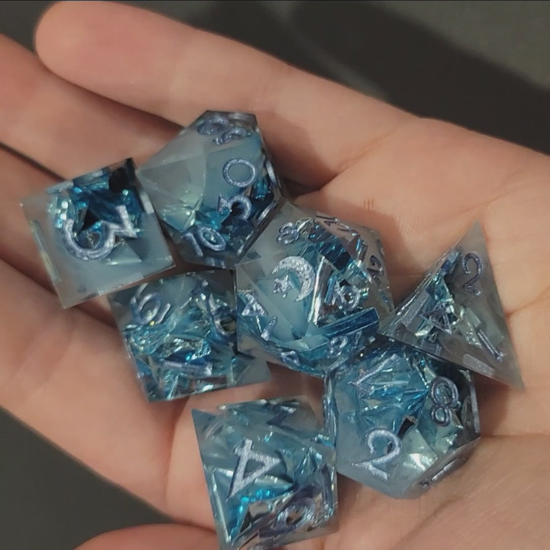 ✦ Blue and white resin with a sparkly core. Designed to look like the embodiment of winter!