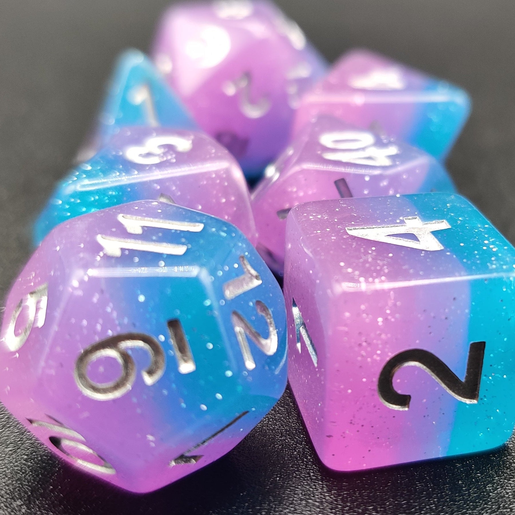 I bought this set to replace a set I loved from a big company I didn't want to support any longer. Now that I've seen these dice in person, I can wholeheartedly say that this set is *even prettier* than the set I was replacing! I've definitely got my eye on a few more sets from this shop. Everything I ordered from Dicebound is gorgeous and came clearly packaged with love. I'm looking forward to my next order! 💖