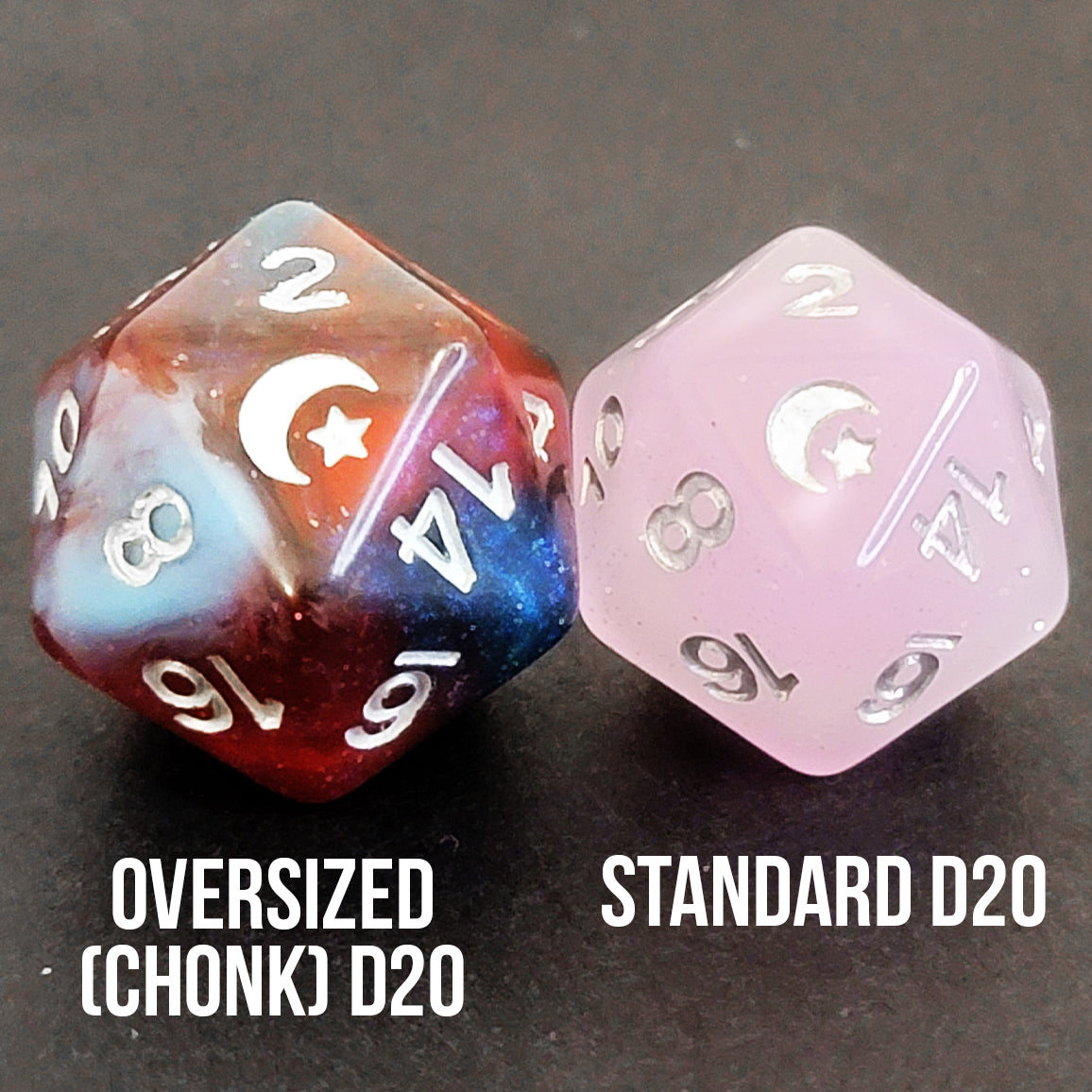 7 piece RPG dice set with a Chonk (Oversized) D20