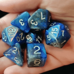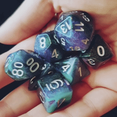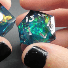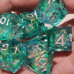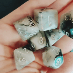 These dice are so nice!! My pictures don't do them justice, but I'm absolutely obsessed with how cloudy and glittery they look, and the hint of green is just too good! Glad I took a chance on the mystery dice - will definitely buy from Dicebound again!